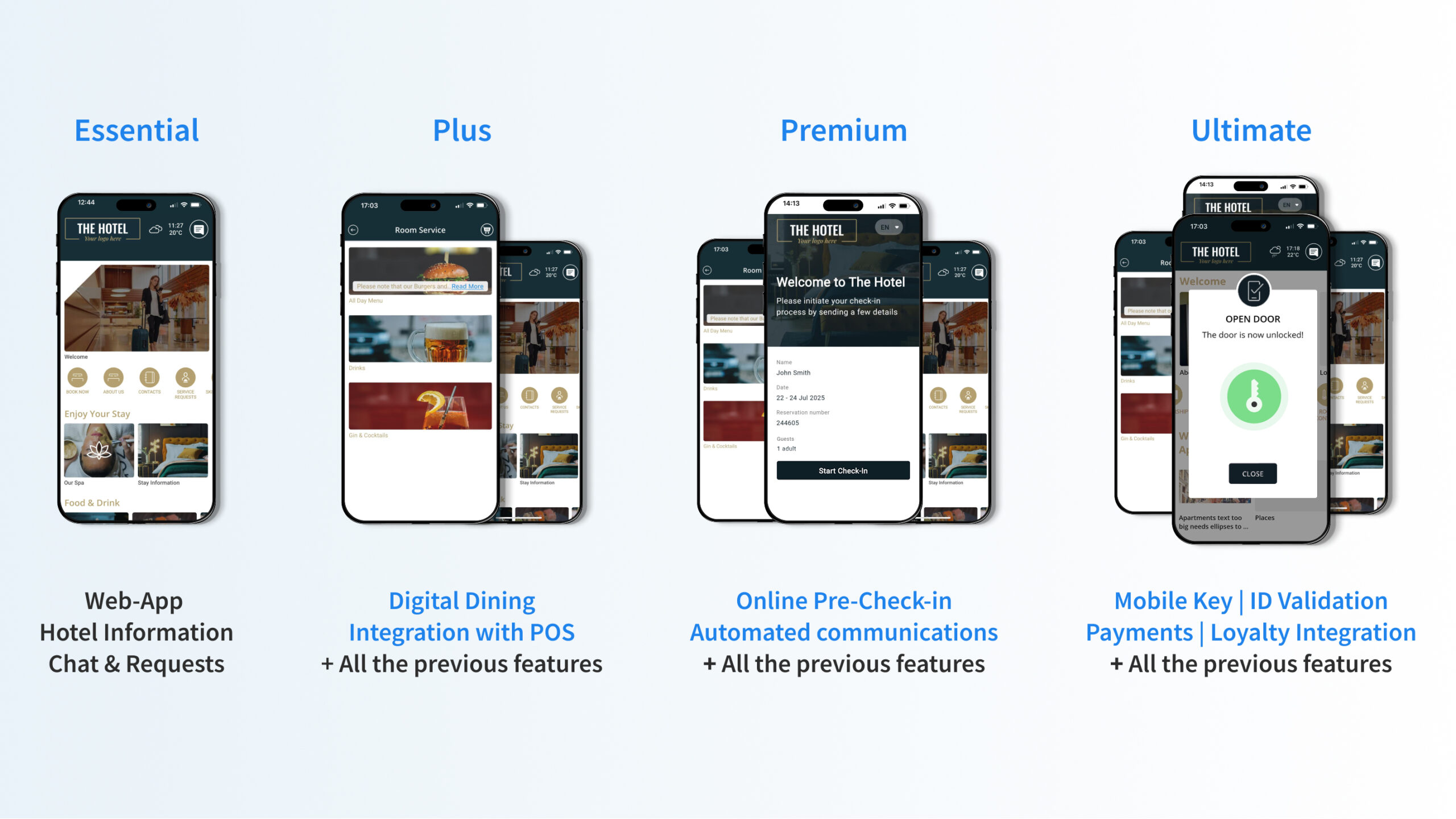 ➜ Ultimate: The full mobile journey: mobile key, self check-in, check-out, loyalty, and integrated payments.